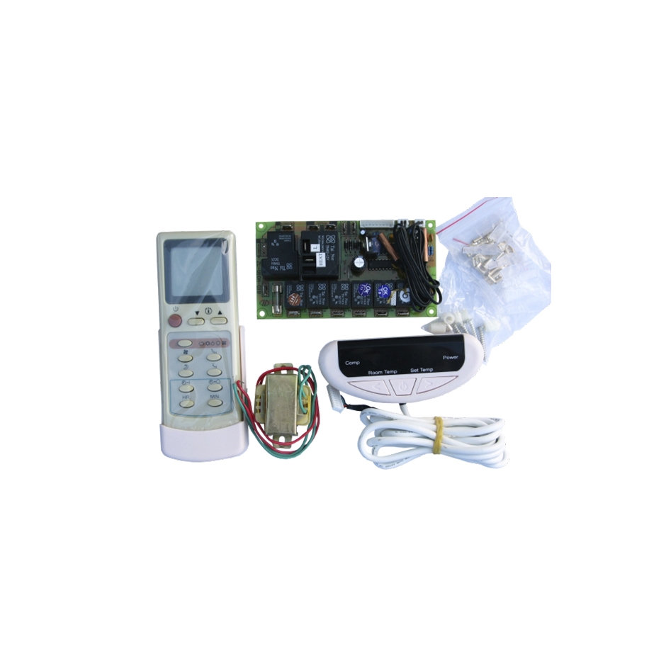 Incluye función auto-arranque. Posee 6 relés de control para las distintas válvulas. Módulo electrónico para equipos de aire acondicionado incluido receptor de mando, mando a distancia, transformador y accesorios para su instalación. Compatible con cualquier equipo de aire acondicionado excepto equipos inverter.
