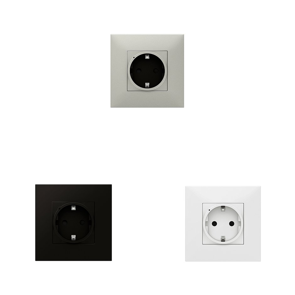 - Se puede instalar en lugar de una base de corriente existente en una caja universal de 40 mm de profundidad, suministrado con garras.