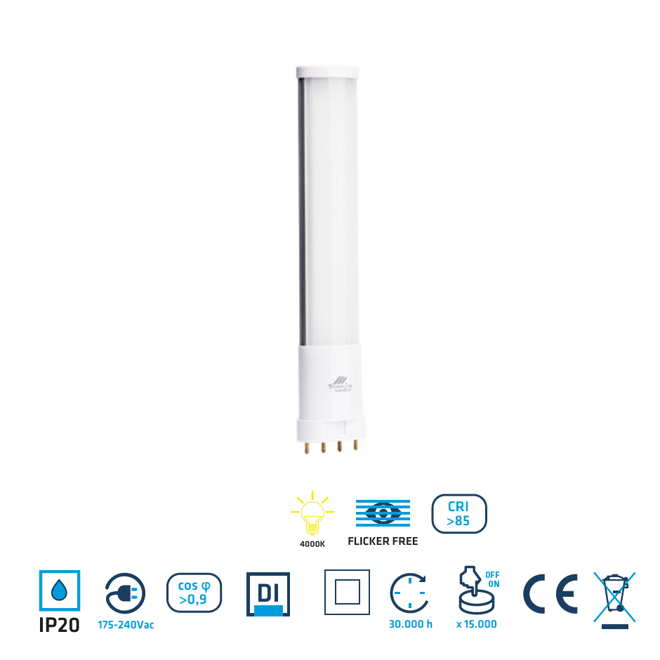 Tubo de led 2G11 de10W en 4000 ºK de Threeline PLL10WBN