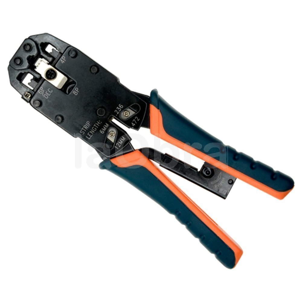 Herramienta especial de crimpado para conectores RJ45 / RJ11 / RJ12 sobre cable UTP.
