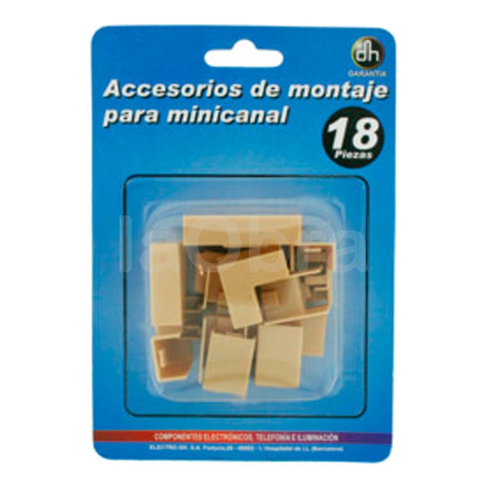- Kit en blister de 18 accesorios de montaje para minicanal.