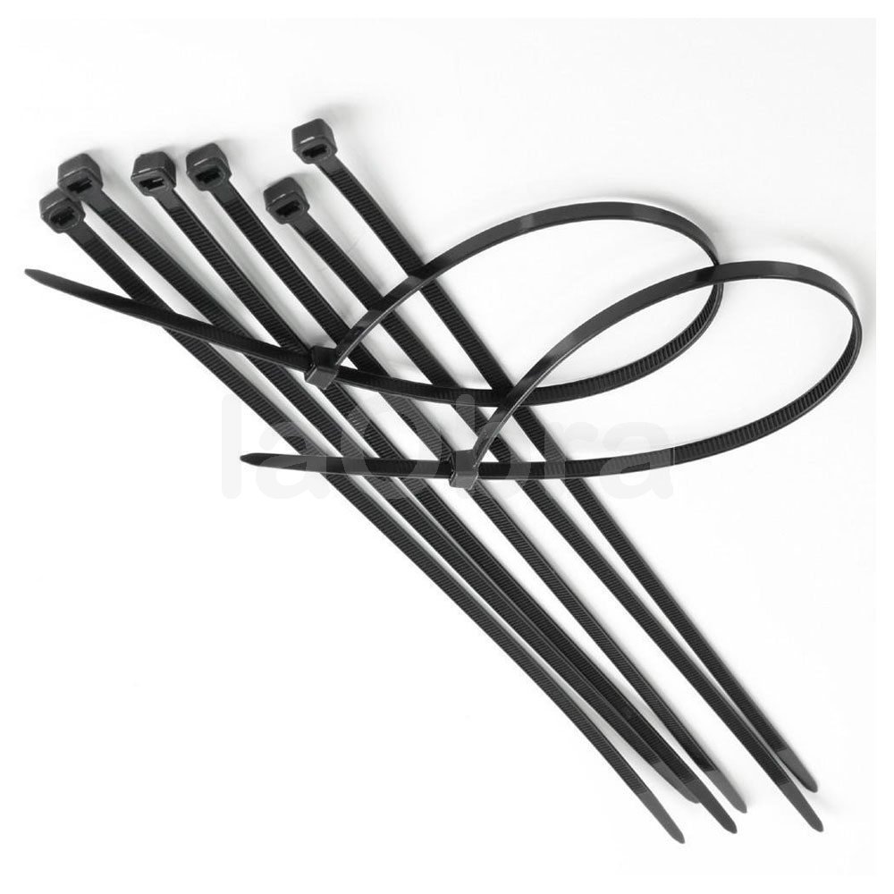 - Bridas sujeta cables de poliamida negras: 2.8 x 98 mm, 3.6 x 140 mm, 4.8 x 200 mm, 4.8 x 250 mm, 4.8 x 290 mm, 4.8 x 360 mm, 4.8 x 430 mm.