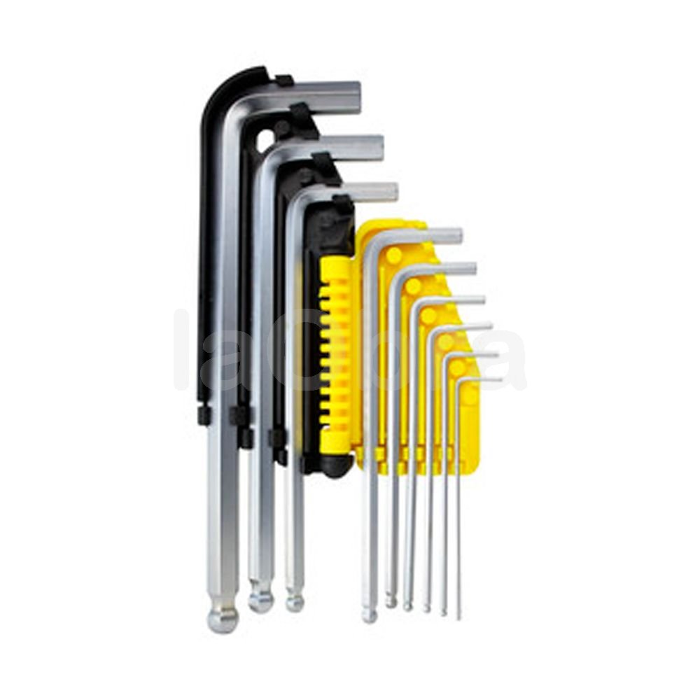 Juego de 9 llaves acodadas hexagonales con cabeza esférica compuesto por: