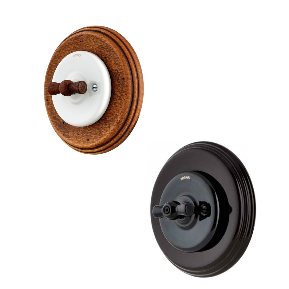 - Fontini combina la funcionalidad de sus mecanismos con el diseño, presentando distintas opciones; pudiendo elegir entre lazo de madera o de porcelana. También se complementa esta serie marcos de madera o porcelana.