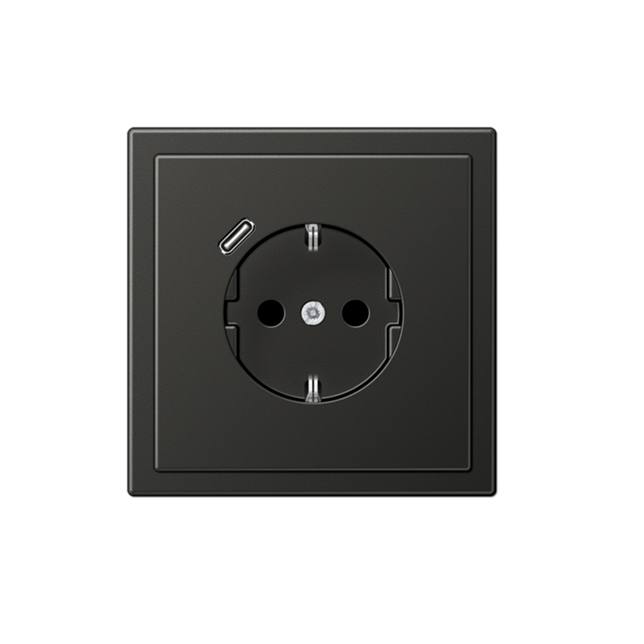 Enchufe Schuko con cargador USB tipo C en antracita jung LS 990. Ref: AL1520-18CAN-L
