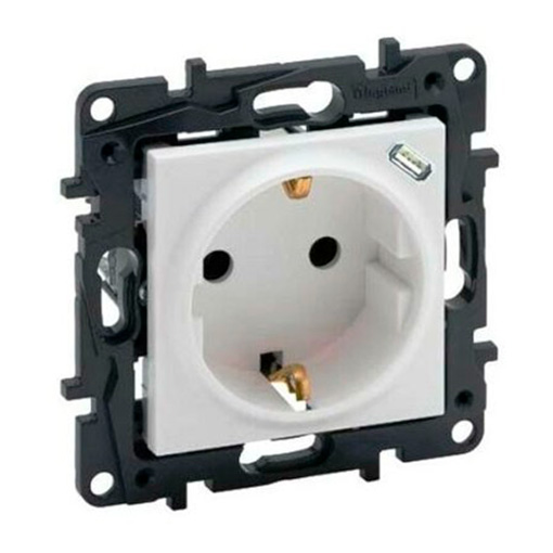 - Base de corriente 2P+T 10/16A con cargador USB C integrado.