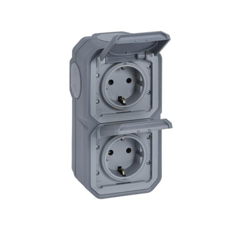 La base de corriente doble 2P+T Plexo es un mecanismo completo diseñado para instalación vertical de superficie. Algunas características importantes son: