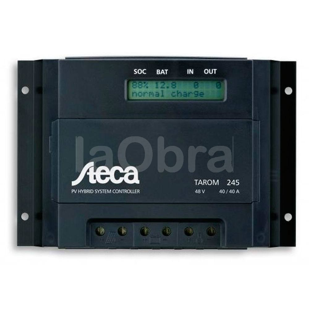 Steca Tarom 4545 12/24Vdc 45A Automático Dis. La nueva edición de Steca Tarom sienta nuevas bases en esta clase de potencia. Un display gráfico informa al usuario sobre todos los datos importantes de la instalación y permite configurar y adaptar el regulador a los requisitos específicos de cada instalación. Un gran número de funciones interesantes permiten al usuario adaptar el regulador a las condiciones especiales de su sistema. Mediante una determinación del estado de carga de la batería claramente mejorada el sistema se regula de forma óptima y las baterías están protegidas. El regulador de carga Steca Tarom constituye la mejor elección para dimensiones de sistema de hasta 2.700 Wp en tres niveles de tensión (12 V, 24 V, 48 V).