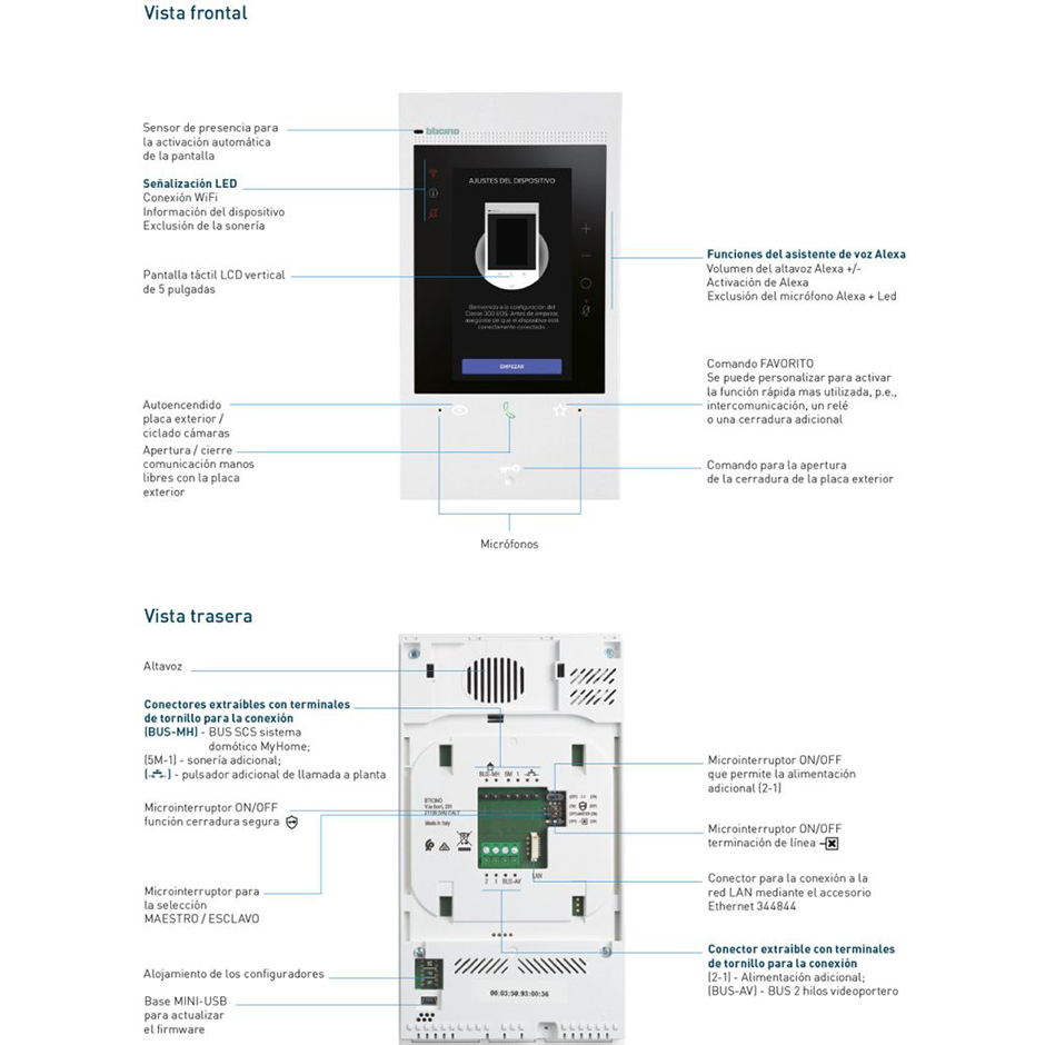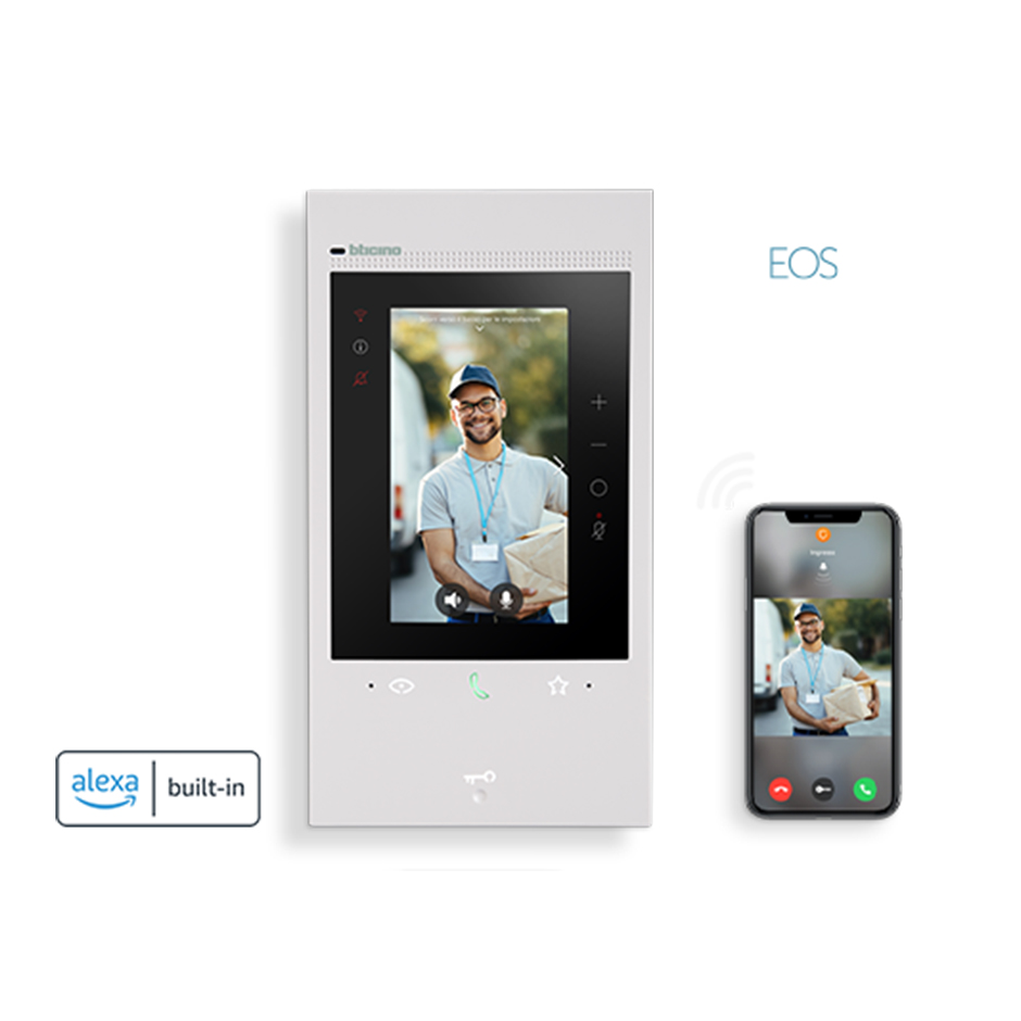 Descubre el nuevo Classe 300EOS with Netatmo, el primer videoportero conectado manos libres WiFi con asistente vocal Amazon Alexa incorporado, que permite interactuar con cualquier dispositivo «works with Alexa» y, en un futuro, ofrecerá nuevas e innovadoras funciones del hogar conectado. Disfruta de la experiencia Alexa interactuando con sus funciones: rutinas personalizadas, reproducción de música, funciones del hogar inteligente, alarmas, recordatorios y funciones de videoportero.