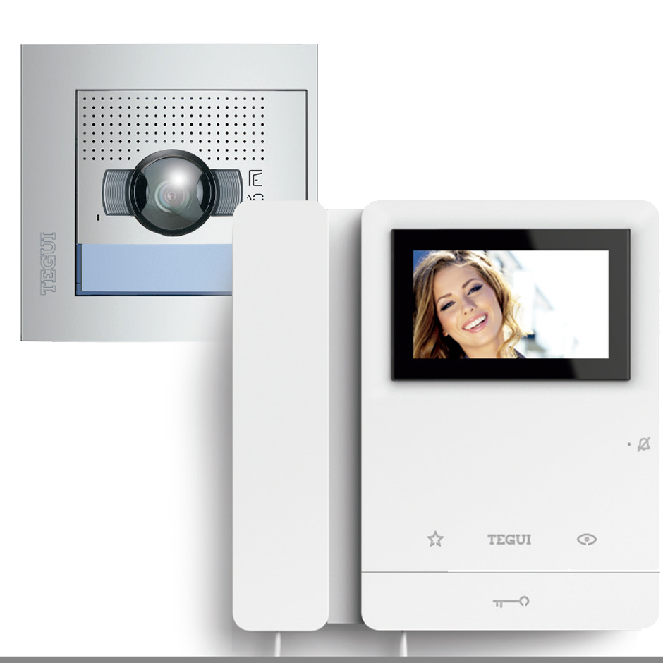 - Kit de videoportero 2 hilos para vivienda unifamiliar compuesto de monitor SERIE 8 con auricular y pantalla a color de 4,3″