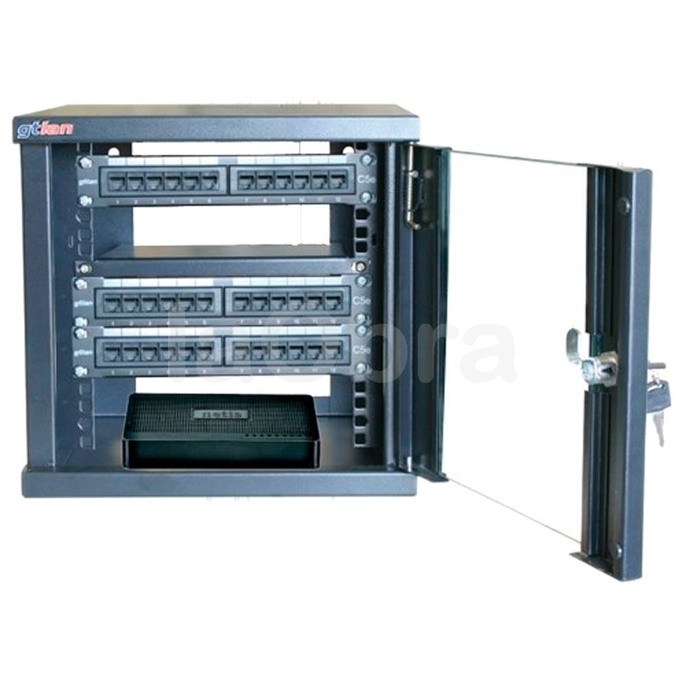 - Compuesto por: Armario 10″ 6U con bandeja y 1 regleta de 3 schukos. Medidas 31,3 x 32,5 x 30 cm. 3 panel 10″ 12 RJ45 C5E. 24 latiguillos UTP C5E 25 cm. 1 switch 16 RJ45 10/100 Mbps.