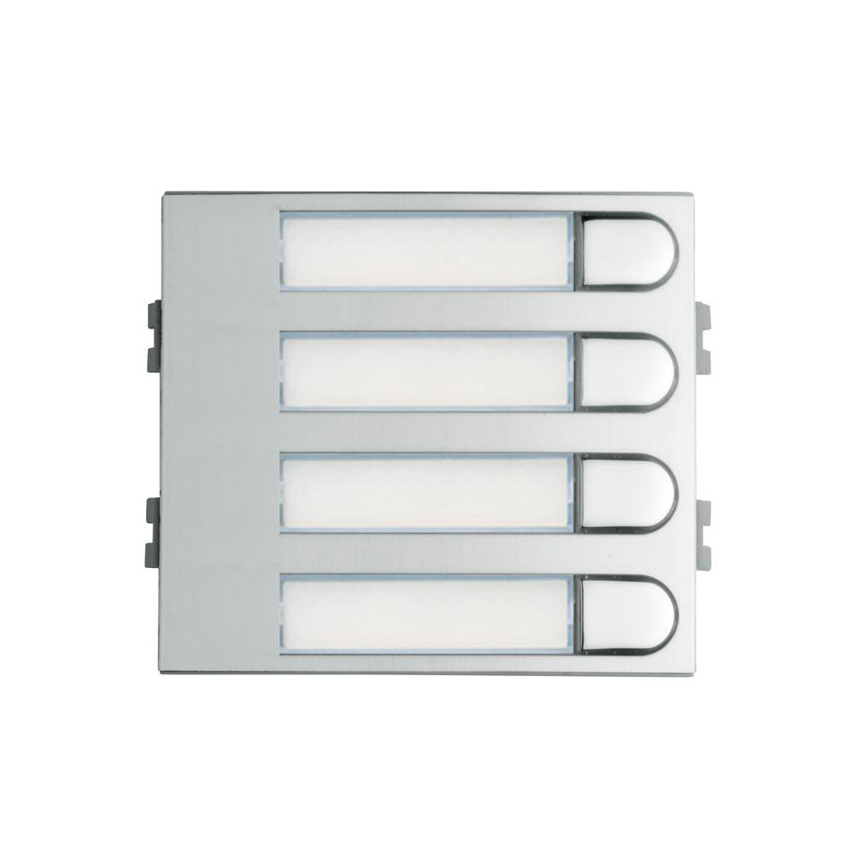 Los pulsadores incluyen un tarjetero de policarbonato (acceso frontal), para alojar una etiqueta con el nombre del propietario de la vivienda y el número de puerta. Iluminación integrada que permite visualizar los tarjeteros, aún en la más completa oscuridad.