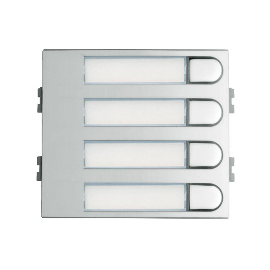Los pulsadores incluyen un tarjetero de policarbonato (acceso frontal), para alojar una etiqueta con el nombre del propietario de la vivienda y el número de puerta. Iluminación integrada que permite visualizar los tarjeteros, aún en la más completa oscuridad.