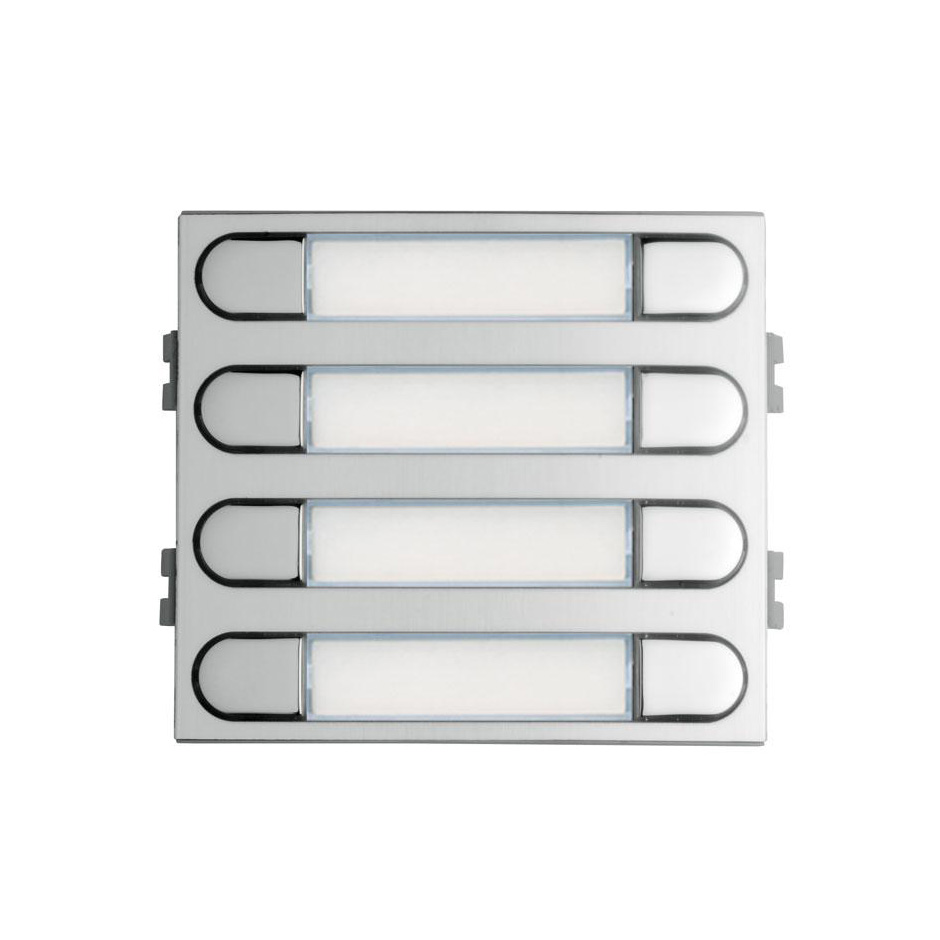 Los pulsadores incluyen un tarjetero de policarbonato (acceso frontal), para alojar una etiqueta con el nombre del propietario de la vivienda y el número de puerta. Iluminación integrada que permite visualizar los tarjeteros, aún en la más completa oscuridad.