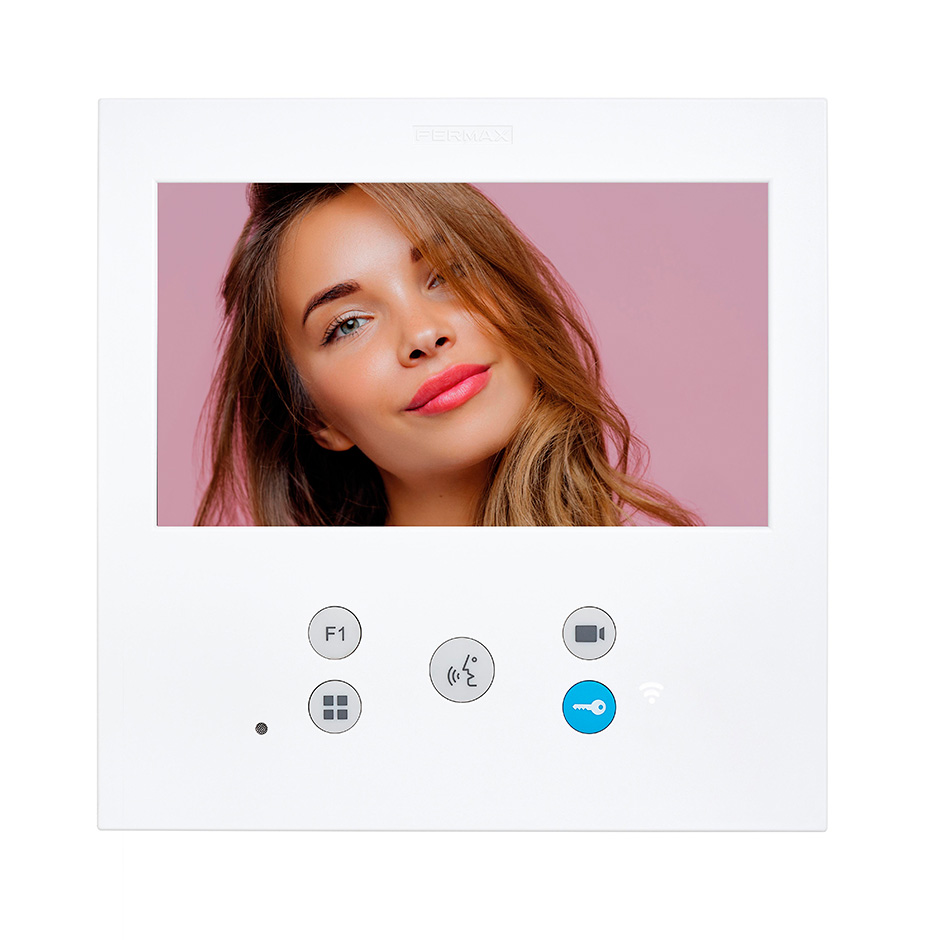 VEO-XL WIFI está equipado con conexión Wi-Fi que permite el desvío de llamadas a dispositivos móviles. Gracias a la aplicación BLUE de Fermax, disponible de forma gratuita en Play Store y App Store, las funciones del videoportero se pueden gestionar directamente desde un móvil o tablet, para conectarte a tu hogar, estés donde estés.